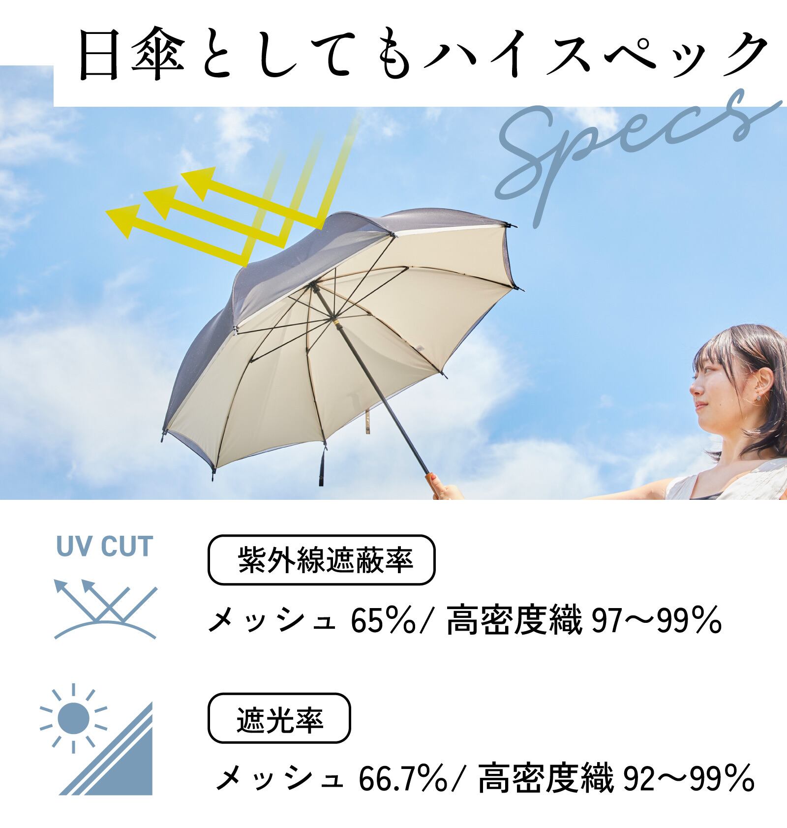 さらに、この傘は二重構造により、太陽光や熱を効果的に遮断しますので、日傘としての効果も抜群!暑い日差しの中でも快適な日陰を提供し、熱中症対策にも最適です。