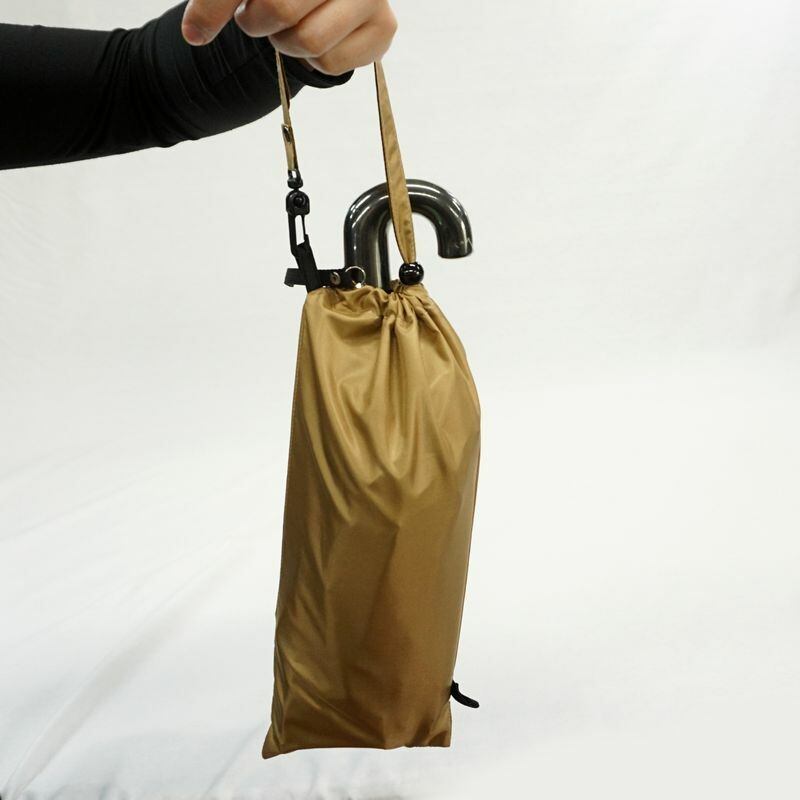 お買い物やビジネス時等で濡れた折りたたみ傘をキレイにたたまなくてもサッと入れやすい巾着傘袋です。2wayタイプのストラップ付で腕やバッグの持ち手等に掛ける事も出来ます。