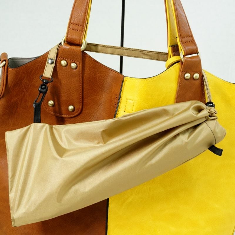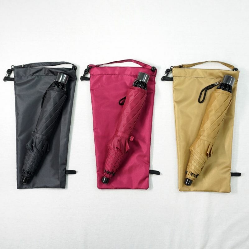 お買い物やビジネス時等で雨に濡れた折傘を少しの間使わない時に傘の収納でお困りではないでしょうか?レインポケットは、濡れた折りたたみ傘をキレイにたたまなくてもサッと入れやすい巾着傘袋です。2wayタイプのストラップ付で腕やバッグの持ち手等にも簡単に掛けれるので荷物が多い時でも、とても便利な傘袋です。