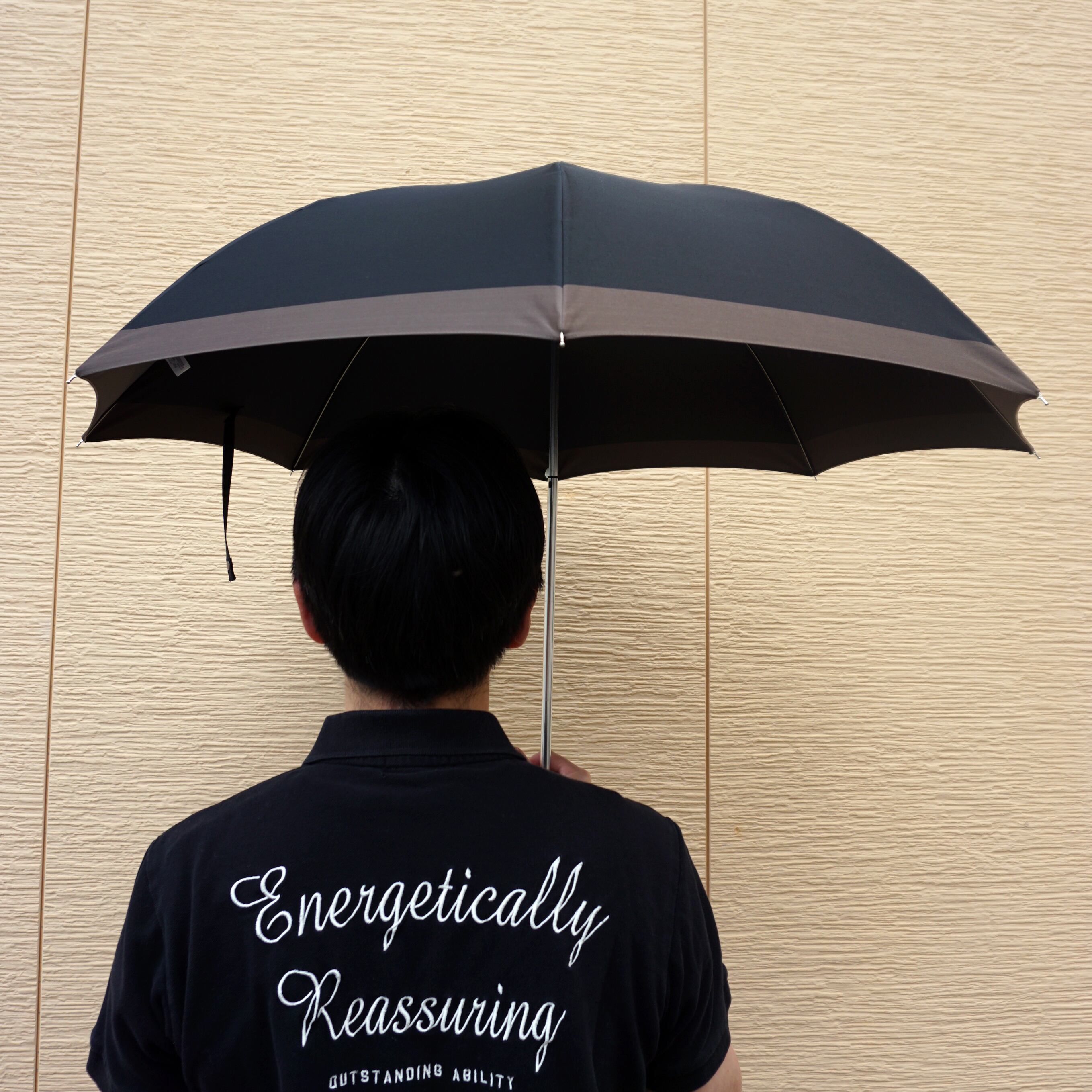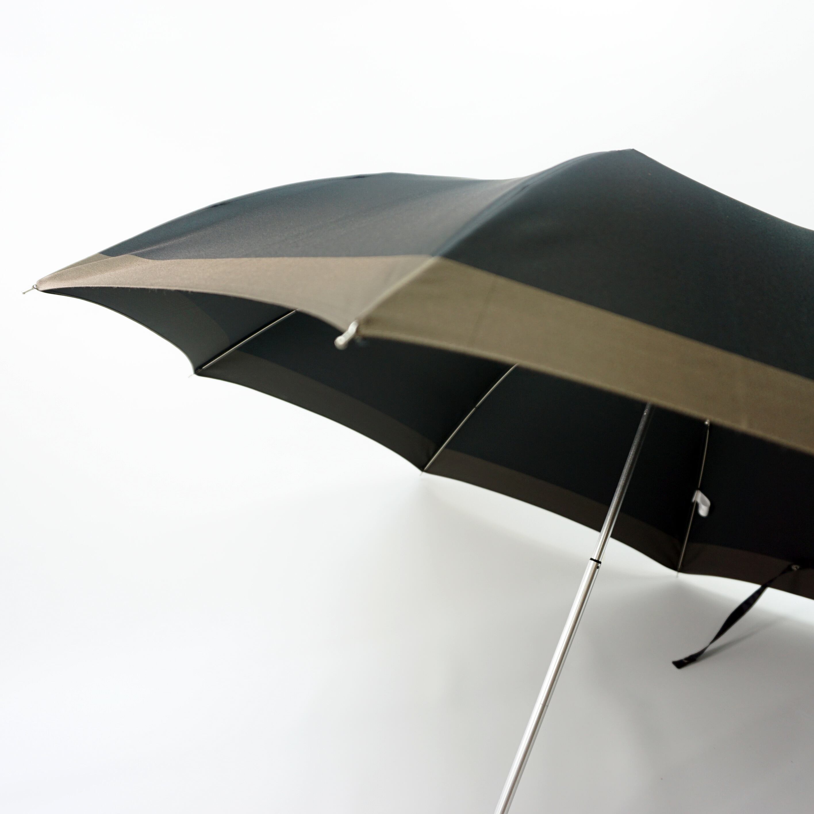 甲州織生地を使用した男性用日傘折りたたみ日傘です。甲州織は、あらかじめ糸の段階から染色加工を行います。深みある生地は清楚で落ち着きのある風合いになっています。日本の職人が1本1本手作りした逸品です。